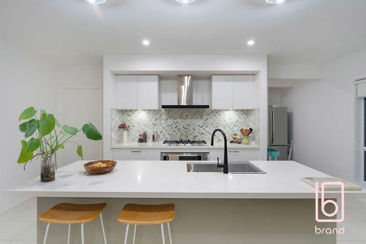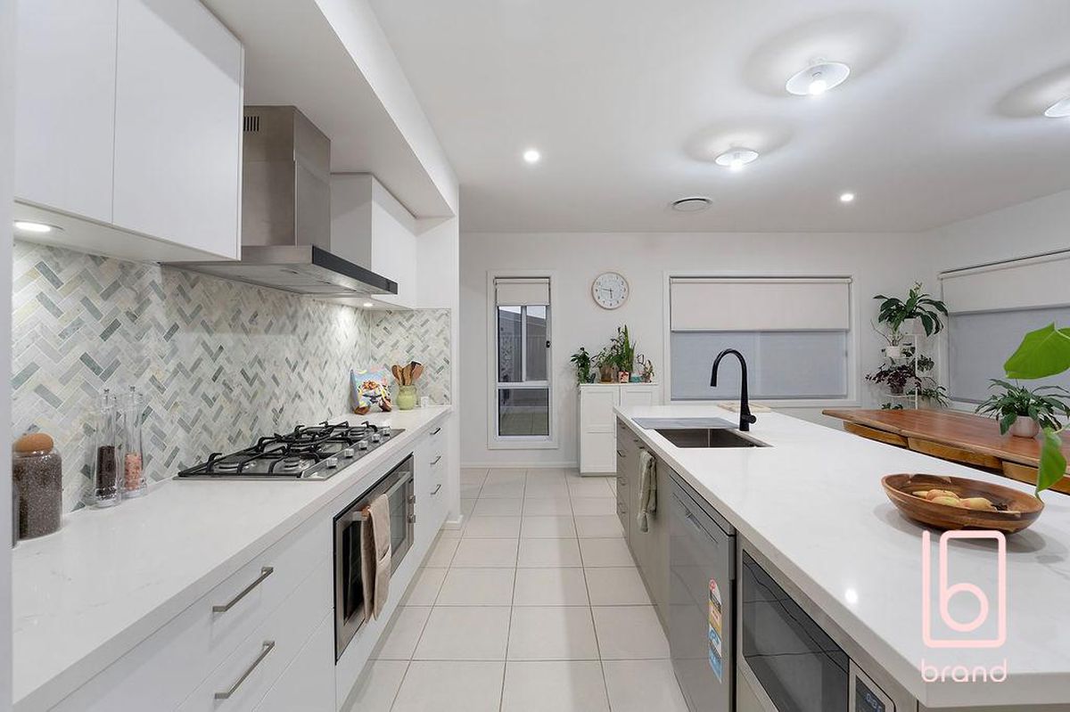 * Incredible chefs' kitchen with Caesarstone bench tops, top of the line appliances Herringbone style splashback and generous island bench